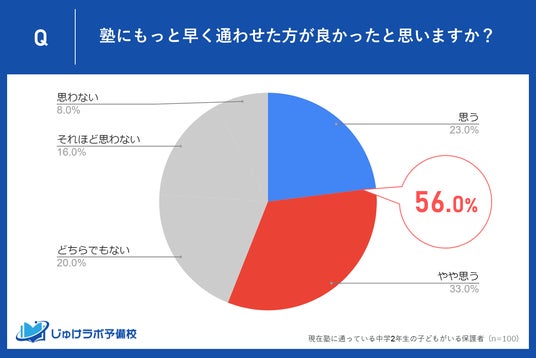 56%の保護者が「塾にもっと早く通わせた方が良かった」と回答