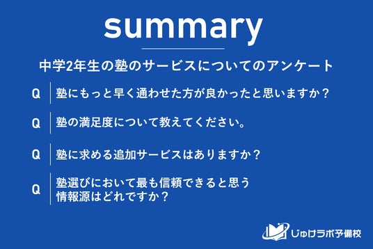 - 調査概要:中学2年生の塾サービスに関する意識調査