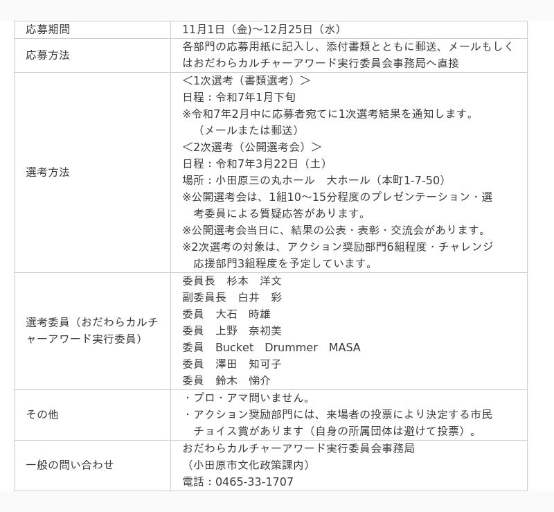 おだわらカルチャーアワード(小田原市ホームページ内)