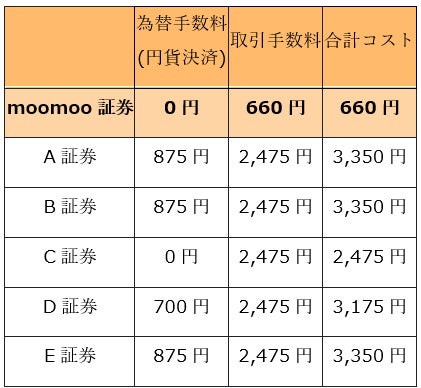 例えば、米国株を50万円分購入時のコストを比較すると、以下のような違いがあります: