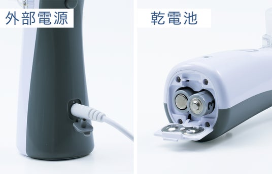 外部電源・乾電池2種類の給電方法 : 自宅などの電源のある所、持ち運びでの利用など場所に合わせて選択できます。
