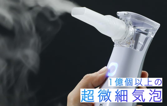 音の振動”超音波”を利用して、1億個以上の超微細気泡「ナノバブル」を発生させる携帯型のネブライザを先行販売いたします。