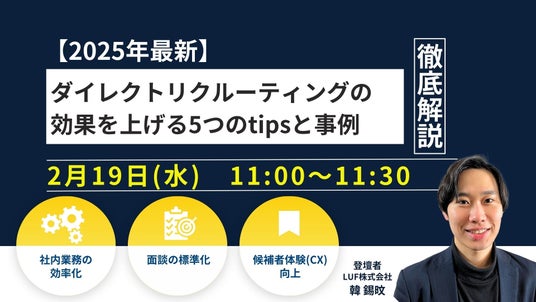 LUF株式会社は、LUF主催セミナー『【2025年最新】ダイレクトリクルーティングの効果を上げる5つのtipsと事例を解説』のアーカイブ動画を無料公開いたしました。