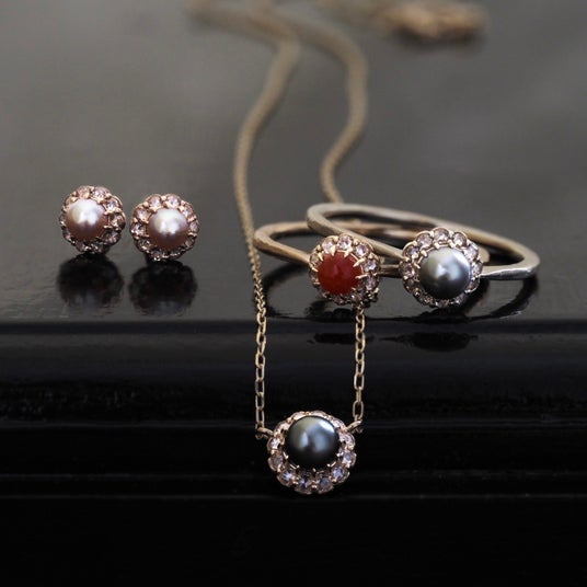 取り巻きには、1月にご紹介したローズカットダイヤモンドを採用。センターストーンであるパールや珊瑚、カボションカットダイヤモンドが放つ艶めきと呼応するように、ローズカットダイヤモンドが優しく光り輝きます。マルチカラーが特徴のパーセル ジュエリーとの相性も抜群で、デザイナーが自ら選び抜いたサイドストーンが、ジュエリー全体に上品な華やかさを添えています。すでにオールローズカットダイヤモンドのポンポネをお持ちの方は、ぜひ今回の新作と合わせてご覧ください。