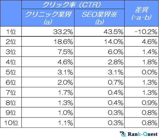 ※ SEO業界のCTR情報はランクエストサイト(https://rank-quest.jp/ )のデータに基づいています。