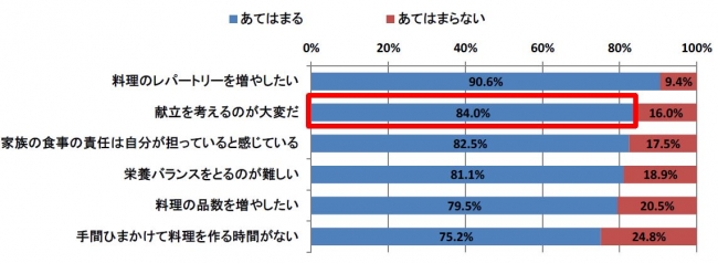 母親の8割以上『家族の食事の責任は自分にある』。しかし、7割以上が料理に手間ひまかけられないという母親の実態が明らかに。