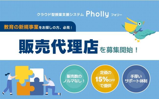 上記のような特徴を持つ「Pholly」の販売代理店制度は、文教×ITの領域で始める新しいビジネスとして最適です。ご興味がございましたら、下記までお気軽にお問い合わせください。