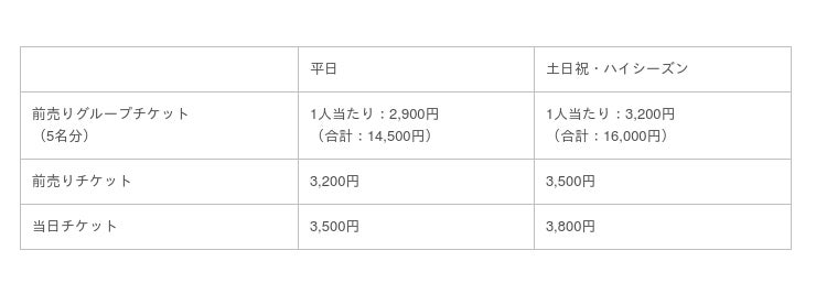 ・チケット料金:
