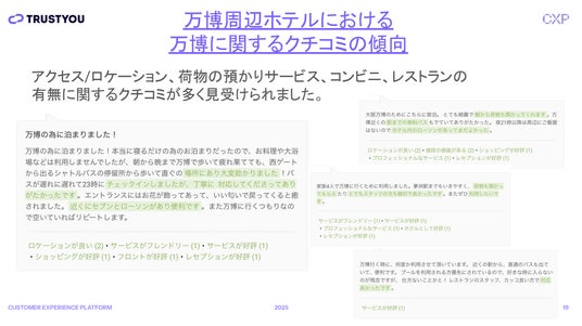 2024年4月~5月と2025年4月~5月のクチコミデータを比較することで万博による宿泊需要の増加がホテルの評価や顧客体験にどのような変化をもたらしているかを調査しています。