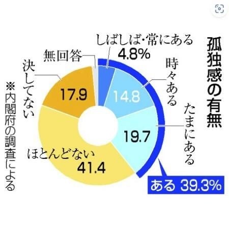 【出所:一般社団法人共同通信社”孤独感「ある」が39%、横ばい 23年政府の2万人調査”】