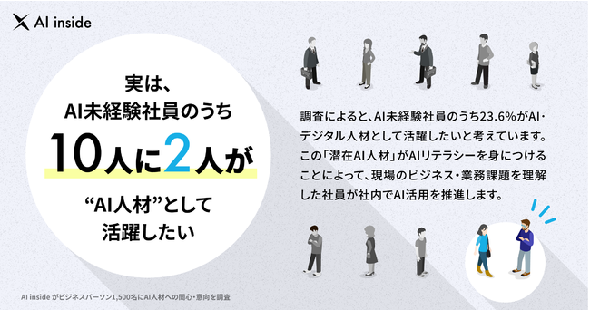 「世界中の人・物にAIを届け、豊かな未来社会に貢献する」をミッションに掲げ、AIプラットフォームを提供するAI inside 株式会社(代表取締役社長CEO兼CPO:渡久地 択、本社:東京都渋谷区、以下「AI inside」)は、2022年4月に全国20~59歳のビジネスパーソン1,500名を対象に、AI・デジタル人材への関心・意向の把握を目的に調査を実施しましたことをお知らせします。