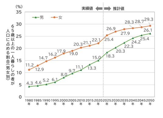 【参考】65歳以上の一人暮らしの者の動向(内閣府 令和7年版高齢社会白書データより作成)