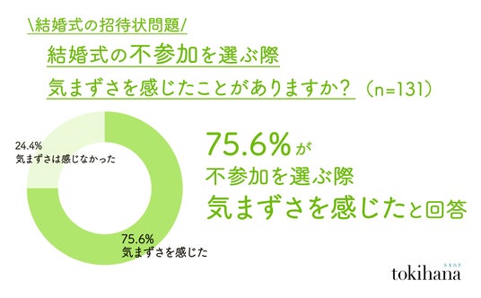 結婚式の招待状を受け取った人の75.6%が「招待状の不参加を選ぶ際、気まずさを感じている」と回答