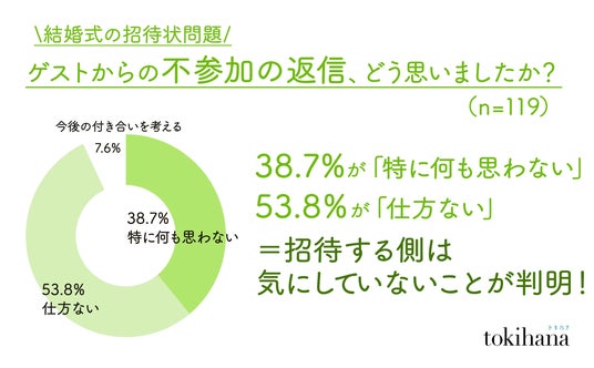 招待する側は不参加の返信を見ても、38.7%が「特に何も思わない」53.8%が「仕方ない」と回答