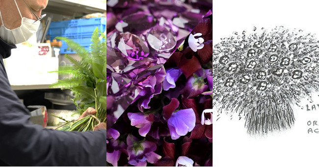 『夢の花屋』の記念すべき第1回目を担当するのはオランダ出身のデザイナー、シェラー・マース。2月の誕生石であるアメジストに見立てたブーケを作ります。シェラーならではの審美眼と確かな技術力に裏打ちされたブーケ作りを、スケッチや制作プロセスと共にお伝えします。読み物としてはもちろんのこと、洗練されたギフトやブライダルでの装飾を考える際のヒントとしてもお楽しみいただけます。