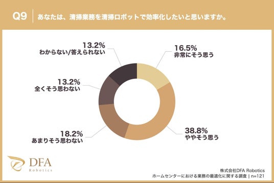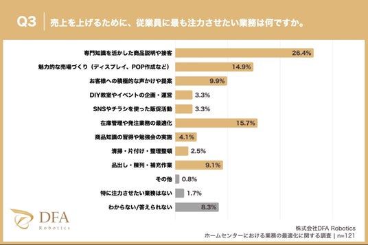 配膳・清掃・搬送ロボットで、あらゆる業界のDXを推進する株式会社DFA Robotics(本社:東京都港区、代表取締役社長:松林 大悟)は、ホームセンターに勤務している方121名を対象にアンケート調査を実施しました。