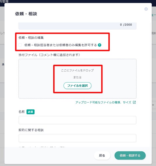 ・依頼・相談時に、依頼者と担当者のみ編集を許可する制限がかけられる