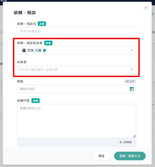 依頼相談ボタンから依頼する際、担当者と依頼者、共有者などで閲覧を制限する機能を追加し、クローズドな環境で安心して依頼や相談ができるようになりました。