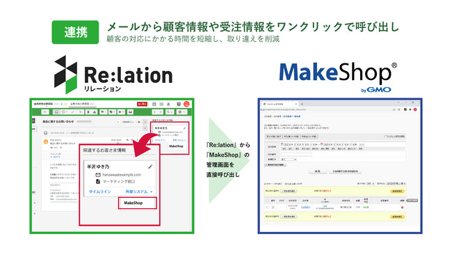 ◆◇『Re:lation』から『MakeShop byGMO』の顧客管理情報や受注管理情報が直接呼び出せる◇◆