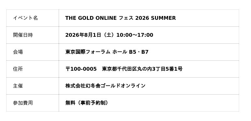 8月1日(土)東京国際フォーラムB5・B7にて開催 リアルイベント「THE GOLD ONLINE フェス 2026 SUMMER」