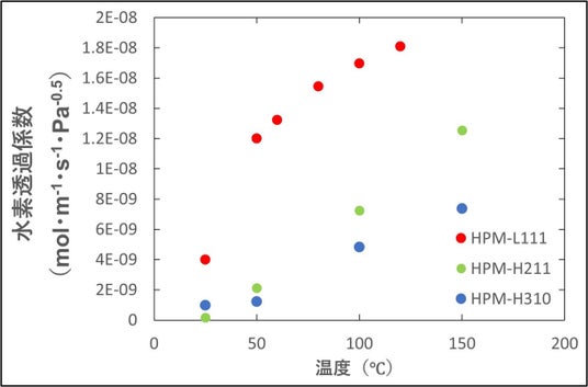 <HPM-L111の水素透過係数の温度依存性>