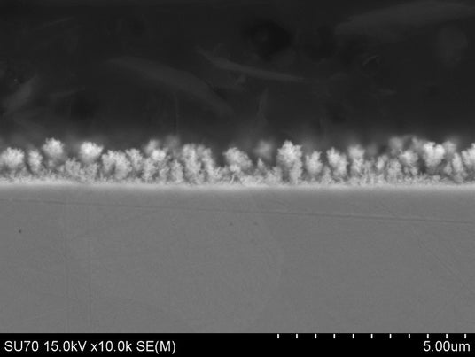 これらの課題を解決するため、「HPM-L111」では、田中貴金属が長年の貴金属素材研究開発で培った独自の表面処理技術を採用しています。膜表面に微細な凹凸構造を形成し、比表面積を拡大することで、水素の侵入速度を高め、100℃以下の低温領域における水素透過性能の大幅な向上を実現しました。