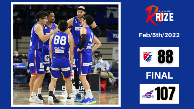 2022年2月5日(土)に開催されましたBリーグ第20節【ライジングゼファーフクオカvs,福島ファイヤーボンズ】において“福岡88-107福島”の結果となりましたことお知らせいたします。