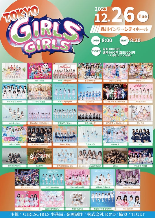 TOKYO GIRLS GIRLSが2023年12月26日(火)に品川インターシティホール(東京都港区港南2-15-4)にて開催されます。チケットはイベントプラットフォーム「TIGET」にて独占販売中です。