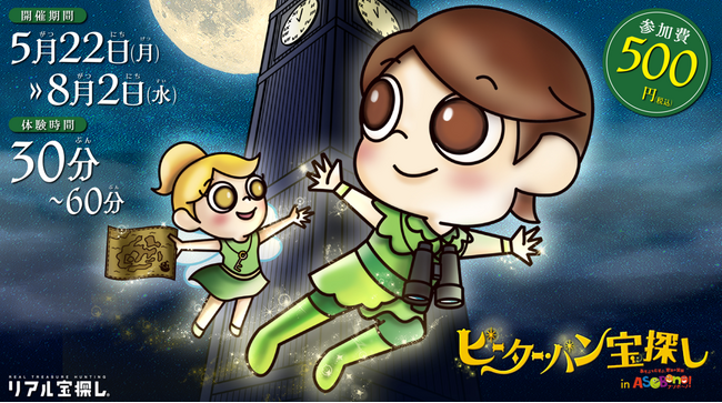 体験型コンテンツ「リアル宝探し」の企画・制作・運営を手がける株式会社タカラッシュ(本社:東京都品川区、代表取締役:齊藤 多可志、以下タカラッシュ)は、世界中で愛され続けているブロードウェイミュージカル『ピーター・パン』とコラボレーションした親子で楽しめるリアル宝探しイベント「ピーター・パン宝探しin ASOBono!」を東京ドームシティの屋内型キッズ施設「ASOBono!」(東京都文京区)にて5月22日(月)より実施いたします。