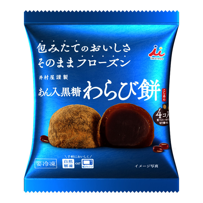 急速冷凍することで、包みたてのようなおいしさをご家庭でいつでも手軽に楽しめる「冷凍和菓子シリーズ」の大福・きなこおはぎ・あん入黒糖わらび餅も全国の量販店・スーパー、井村屋ウェブショップにて好評販売中です。