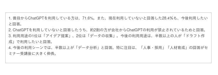 記載例:株式会社SIGNATE「ChatGPT利用実態調査レポート」