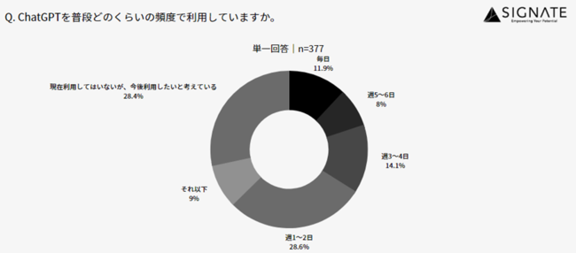 ・普段からChatGPTを利用している方は、71.6%。また、現在利用していないと回答した28.4%も、今後利用したいと考えていると回答。