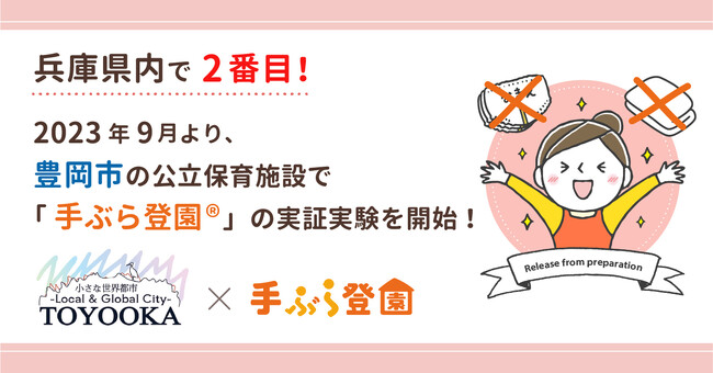 BABY JOB株式会社は、兵庫県豊岡市の公立保育施設において、BABY JOBとユニ・チャーム株式会社が提供する、保育施設向け紙おむつの定額サービス「手ぶら登園」の実証実験を、2023年9月より2か月間実施することをお知らせします。兵庫県内の公立保育施設では、2番目の取り組みとなります。