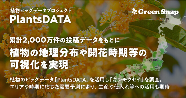 植物コミュニティアプリ「GreenSnap」を運営するGreenSnap株式会社(本社:東京都中央区、代表取締役:西田貴一)は、植物のビッグデータプロジェクト「PlantsDATA(プランツデータ)」において、GreenSnapユーザーの累計2,000万件の投稿データをもとに、特定の植物の生態について時間・位置情報を分析することが可能になりました。