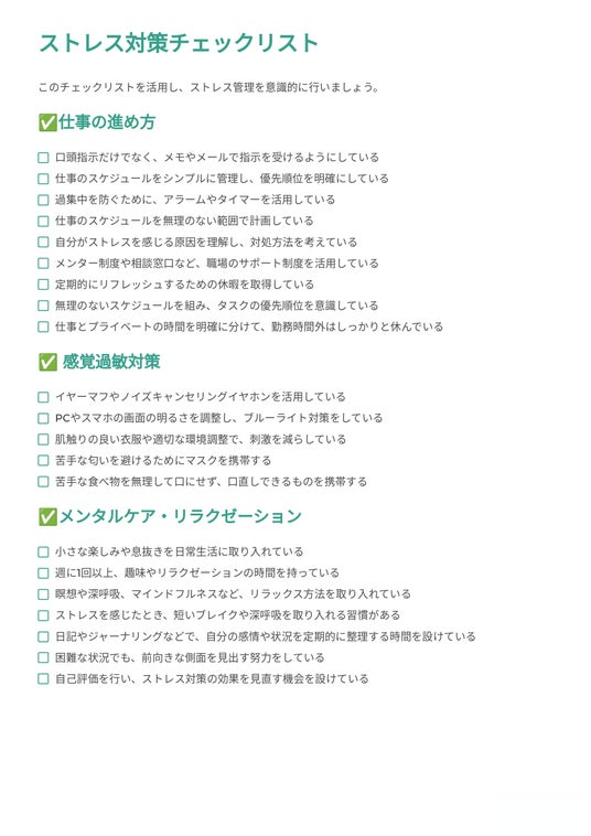 - ストレスの対処法を確認できる自己評価チェックリスト