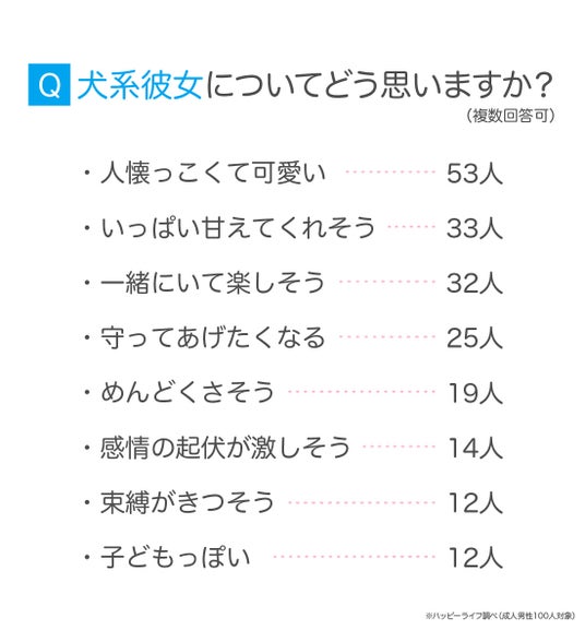 ハッピーライフでは、成人男性100人を対象に「『犬系彼女』についてどう思いますか?」というアンケートを取りました。