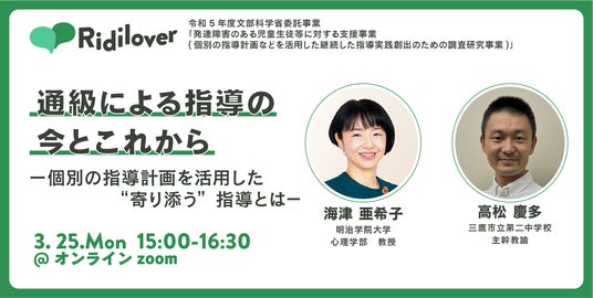 株式会社Ridilover(代表取締役:安部敏樹 本社:東京都文京区 以下「リディラバ」)は、通級による個別の指導計画を軸に、その活用事例を読み解くオンラインセミナー「【通級による指導の今とこれから 個別の指導計画を活用した”寄り添う”指導とは」を無料で開催します。申込頂いた方全員に、当日資料を後日配信します。