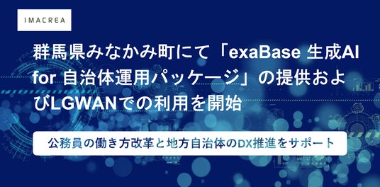 株式会社イマクリエ(本社:東京都港区、代表取締役:鈴木信吾、以下、当社)は、群馬県みなかみ町に「exaBase 生成AI for 自治体運用パッケージ」の提供を開始したことをお知らせします。