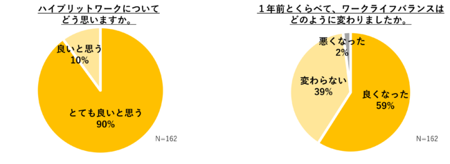 ハイブリッドワークについて100%が「良いと思う」と回答、ワークライフバランスも向上