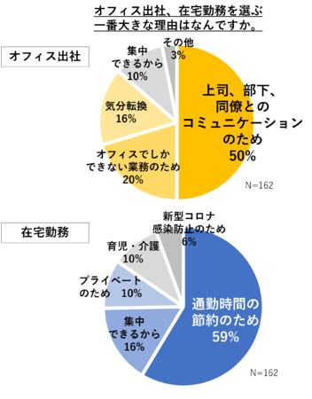 オフィスへの出社を選ぶ理由は「コミュニケーション」在宅勤務を選ぶ理由は「通勤時間の削減」