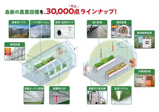 本格参入から約1年で、「ネクシーズZERO」アグリ推進部の農業施設商品数は3万点に拡大し、数多くのサプライヤーと提携した最新設備を取り揃えています。また、北海道から沖縄まで全国の営業拠点が35(支店・営業所)となり、既存就農者はもちろん新規で就農する企業・個人をも積極的に支援しております。