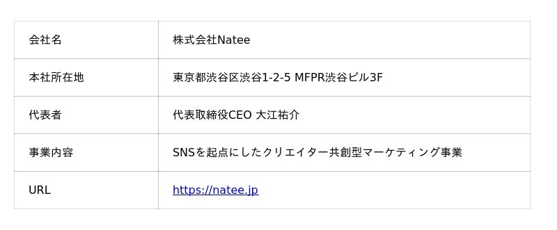 本企画において、クリエイター共創を強みにSNS起点でブランドと新たな価値を創造する次世代マーケティングカンパニー 株式会社Natee(代表取締役CEO:大江祐介、以下「Natee」)は、プロモーション設計、キャスティング、制作ディレクションを一貫して担当しました。