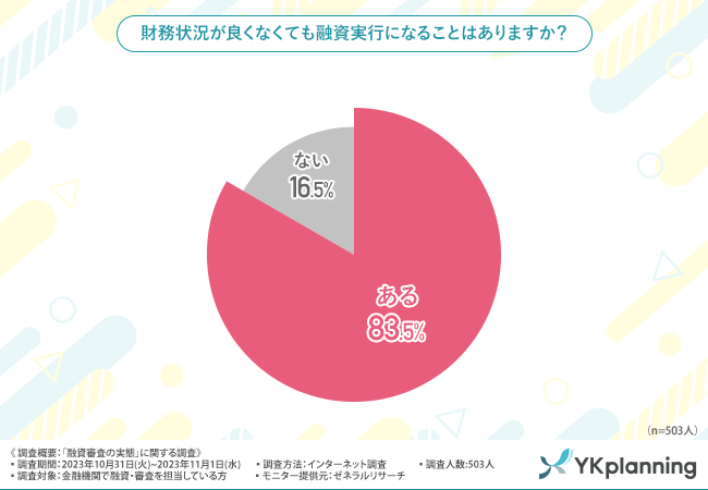 「財務状況が良くなくても融資実行になることはありますか?」と質問したところ、約8割の方が『ある(83.5%)』と回答しました。