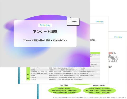アンケート調査の基本から進め方、成功するポイント、費用相場など、アンケート調査にまつわる全般について、わかりやすく解説しています。