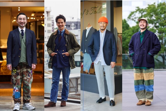 2021年12月号でも行った「紺ブレ座談会」が好評を博したこともあり、本年も「紺ブレサミット」を開催! 「定番」「新作」「変化球」の3カテゴリ分けのもと、約40着の紺ブレが一同に会し、そのすべてを業界人が試着、実際に着てみての感想を伺いました。出演するのは高円寺にて「ボンビュー」という古着店を営む大島拓身(おおしまたくみ)さん、アメリカのカルチャーやプロダクトに精通する小誌でもお馴染みの柳雅幸(やなぎまさゆき)さん、主にイタリアを中心として数多くの海外ブランドを取り扱うドゥエアインクの手塚直樹(てづかなおき)さん。それぞれの目線から各ブレザーの着心地やデザインについて、赤裸々に語っていただきました。