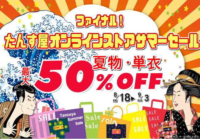 リユース着物「たんす屋オンラインストア」で、8月18日(金)~9月3日(日)にかけてサマーセールファイナルを開催中です。