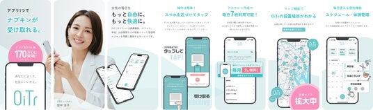 アプリでは、ナプキンの受け取りに加え、「生理日予測」や「体調管理」機能も利用でき、「記録しながらナプキンが受け取れて便利」「予測が正確」といった声が寄せられています。さらに、女性の不安をやわらげるメディア「いつでもオイテル」を通じて、女性の心身の悩み、生理、健康に関する情報を発信し、安心して前向きな選択ができる社会をサポートしています。