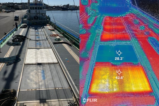 放射冷却素材「SPACECOOL」(以下「本素材」)は、直射日光下において宇宙に熱を逃がすことで、ゼロエネルギーで外気温より温度低下させることができる新素材です。この度、本素材の販売店の1社であり、漁網・漁具の研究開発など海洋技術にノウハウを持つニチモウが千葉県船籍のまき網漁船「きんせい丸」や「伊東丸」に本素材を初めて導入し、貯氷艙の蓋を覆ったところ、従来の保冷シートで覆ったときと比較し貯氷艙内が約3℃低下したことを確認できました。これにより、漁業者は氷を経済的かつ計画的に使用でき、氷の世話をする必要がなくなったことで大漁時においても漁獲物の鮮度や帰港タイミングを気にすることなく、漁に注力することができるようになりました。