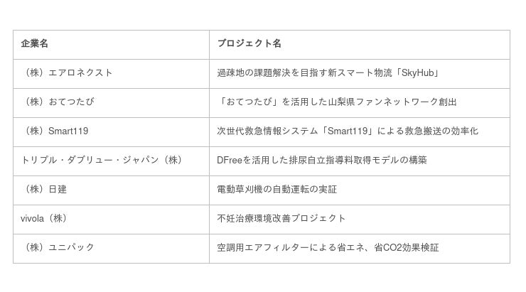 本事業第4期の実施にあたり、テストベッド(実際の運用環境に近い状態で先端技術の実証実験を行う「場」のこと)の聖地・山梨県として、全国のスタートアップ企業等からの社会実証プロジェクトを、本日より募集いたします。