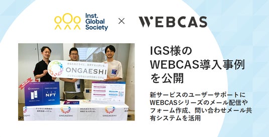自社開発システム「WEBCAS(ウェブキャス)」と「WOW engage(ワオエンゲージ)」を通して、企業のマーケティングとカスタマーサクセスにおけるコミュニケーションの課題解決を支援する株式会社WOW WORLD(ワオワールド/本社:東京都品川区、代表取締役社長:美濃 和男、以下 当社)は、Institution for a Global Society株式会社(本社:東京都渋谷区、代表取締役社長:福原 正大、以下 IGS)様に提供した、WEBCASシリーズのメール配信システム、フォーム作成システム、メール共有管理システムの導入事例インタビューを本日公開いたしました。同社では、リスキリング※・転職一体型サービス「ONGAESHI(オンガエシ)」を運営しており、本サービスのサポートを目的としてWEBCASを導入。メールでのきめ細かな情報発信や問い合わせ対応を実現されています。